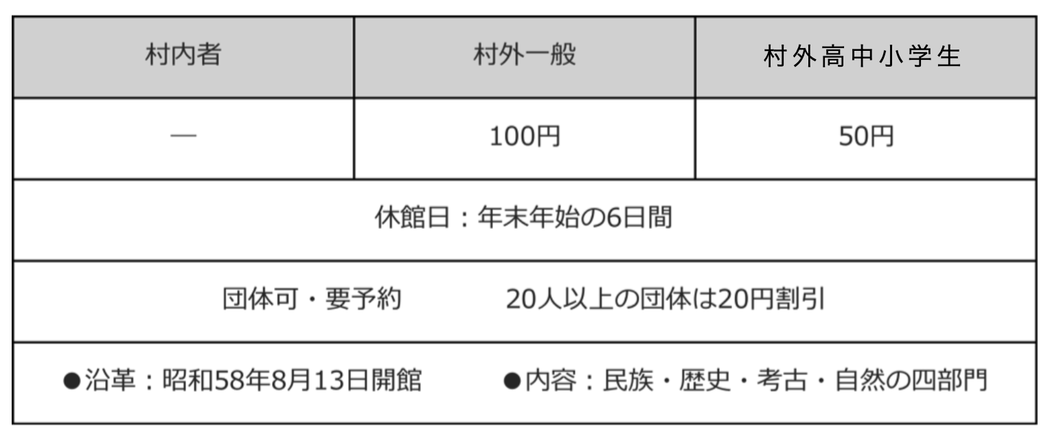 かつては三州街道の宿場町として栄えた根羽村の歴史を中心に紹介する資料館。 木地や養蚕の道具、農機具等今では見る事の出来なくなってしまった希少な品を展示しています。