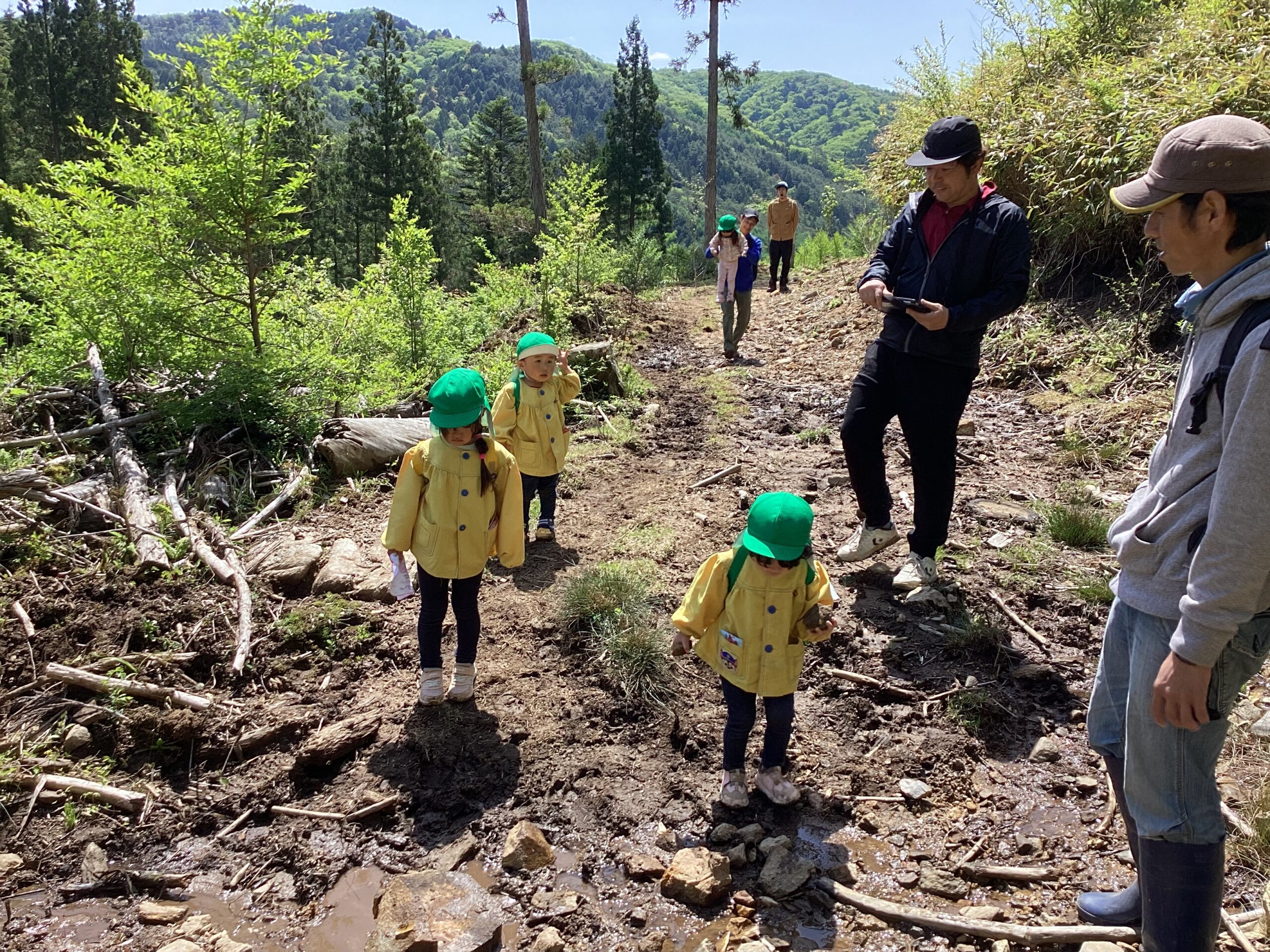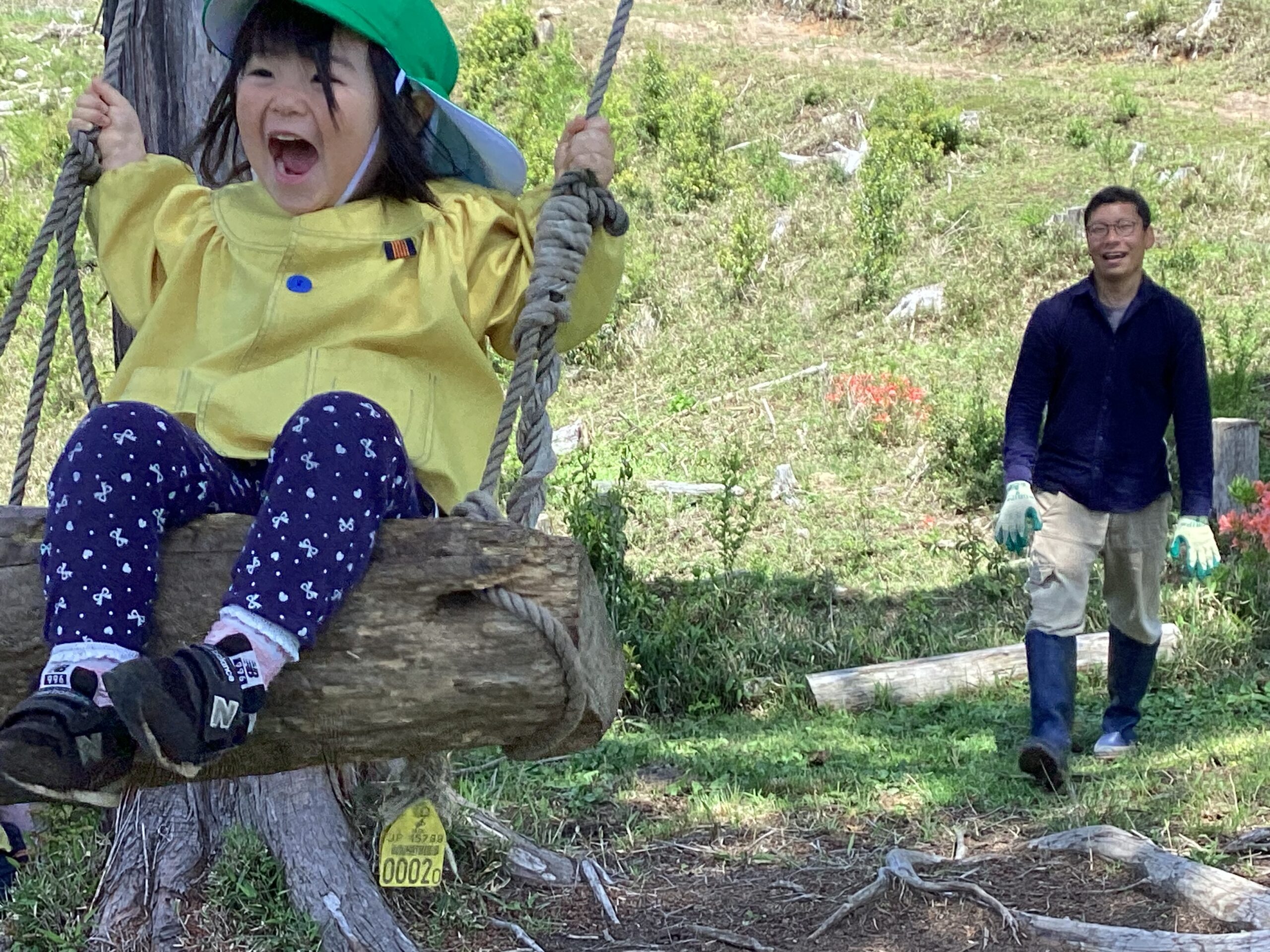 当園は一村一所で少人数・家庭的な保育所です。もちろん一所しかありませんので、保育園の選択はできませんが、共同生活する上でのルールを意識しながらも、子どもたちがやりたいことなどの好奇心が育つ保育を行っています。活動も園外活動が多いのが特徴です。一歩園から出ると草木が生い茂り、目の前には一面に田んぼや畑が広がります。少し歩けば川の音を感じ、少し顔を上げれば山をとても近くに感じます。そんな圧倒的壮大な自然を