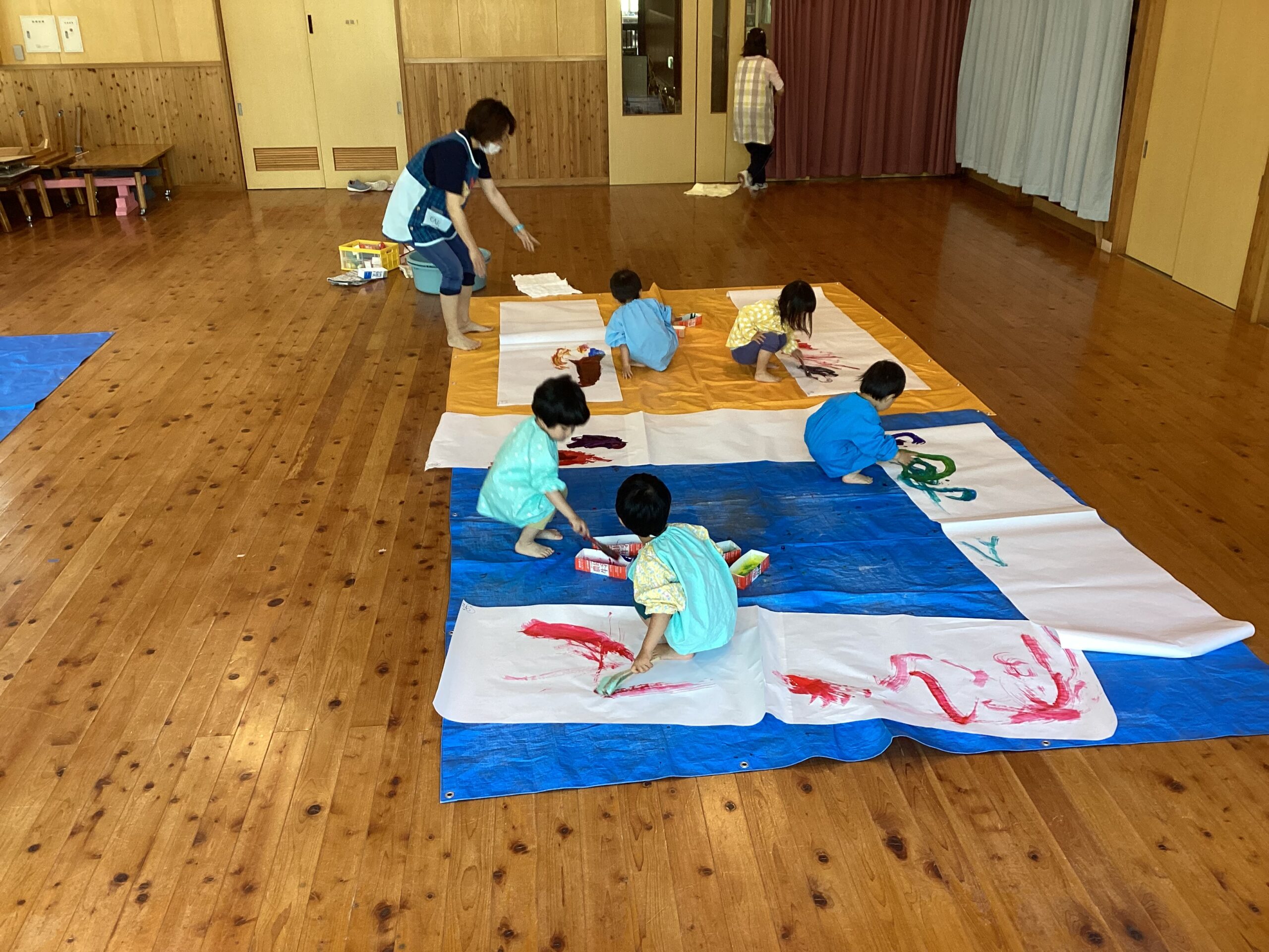 ●雨が降って室内遊びも楽しい!大きなキャンパスに絵を描きました!