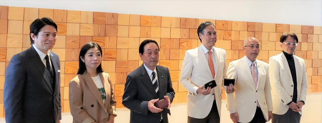 根羽村の「木の糸」を 活用したジャケットの完成を4月17日(水)に知事に報告しました。