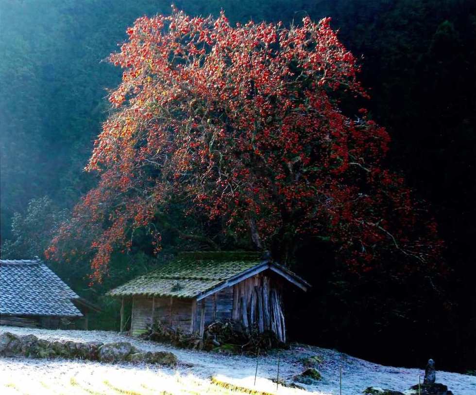 根羽村の景勝地・フォトポイントでもある黒地地籍の柿木 (秋頃に随時、情報を提供いたします。)